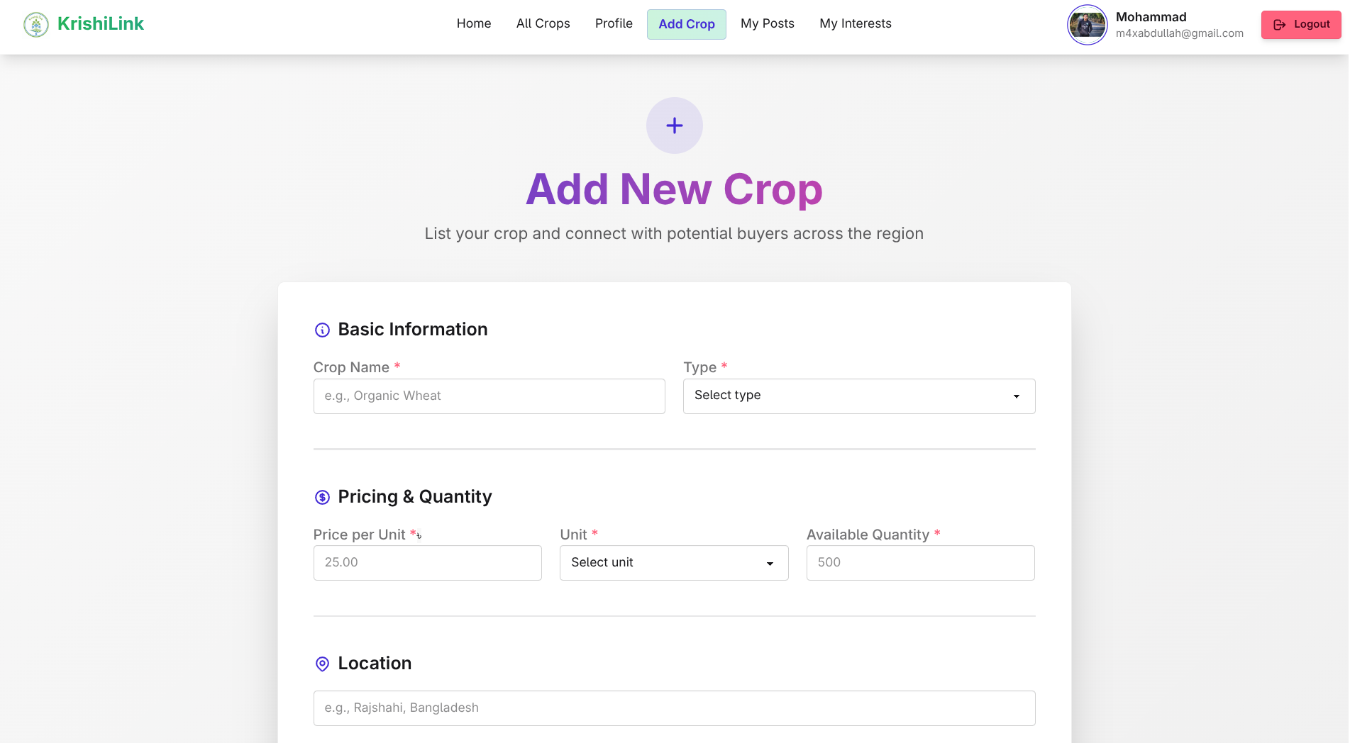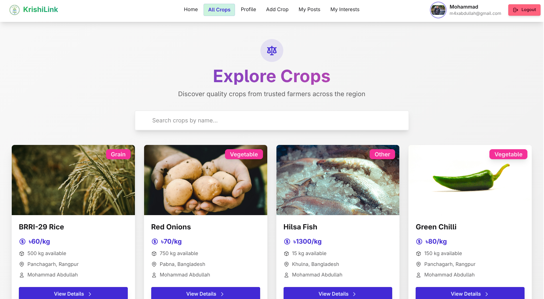 KrishiLink demonstrates full MERN stack capability applied to a real social and economic problem. The direct-trade model it enables has genuine impact potential at scale - connecting agricultural producers to markets without friction or intermediary cost.