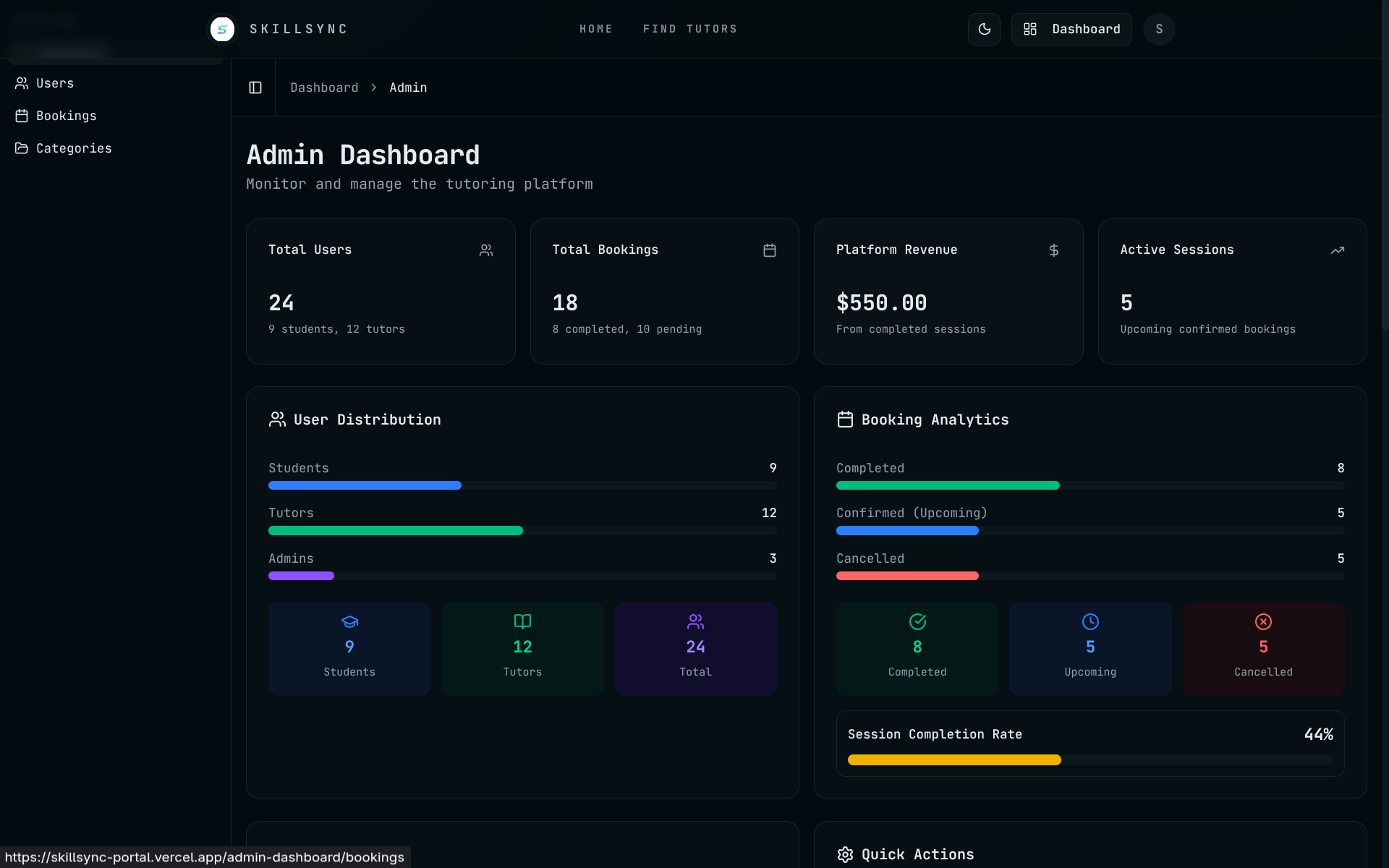 SkillSync demonstrates the full range of full-stack capability - complex auth, multi-role data access, transactional workflows, and a polished consumer-facing UI.